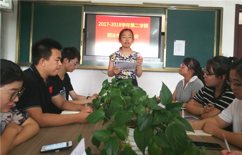 会议中,李主任强调期末考试是现阶段的核心工作,有监考任务的老师要恪守职责、严格执行考试规范,维护考场纪律。之后,李主任带领参会人员学习了鸭脖《关于2017-2018学年第二学期期末考试工作安排的通知》和《2016-2017学年第二学期本科课程试卷评估质量报告》,通过分析专家抽查试卷过程中提出的问题,提出整改措施,要求全体教师务必引起重视、提高认识,避免类似问题的发生。特别强调在考试结束的试卷批阅过程中一定要严格按照试卷评分标准进行阅卷,有条不紊地进行试卷评阅和试卷分析等工作,以确保评阅工作质量。最后,李主任对考试后的领取试卷、流水阅卷、成绩登录、试卷装订等工作进行了全面细致地安排。并要求各教研室会议召开阅卷专题指导会,结合以往阅卷中出现的问题做同意要求,统一标准。