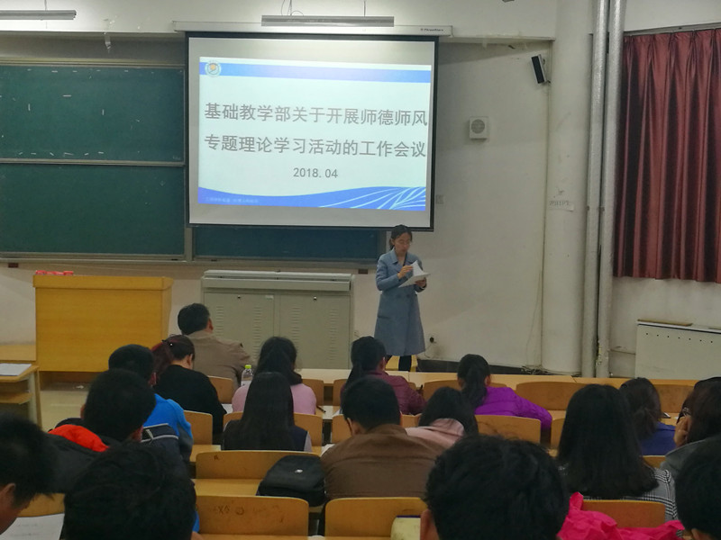 为深入学习相关文件精神,持续加强师德师风建设,4月23日下午,基础教学部在10号楼F201召开关于师德师风专题理论学习活动的工作会议,基础教学部全体教职工参加了会议。会议由基础教学部副主任李琦主持。