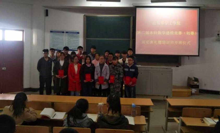2017年3月8日下午,鸭脖第二届本科数学建模竞赛(初赛)颁奖典礼暨数学建模培训班开班仪式在10号楼F301隆重举行。基础教学部数学教研室相关老师及通过初赛的65名学生参加了此次活动。