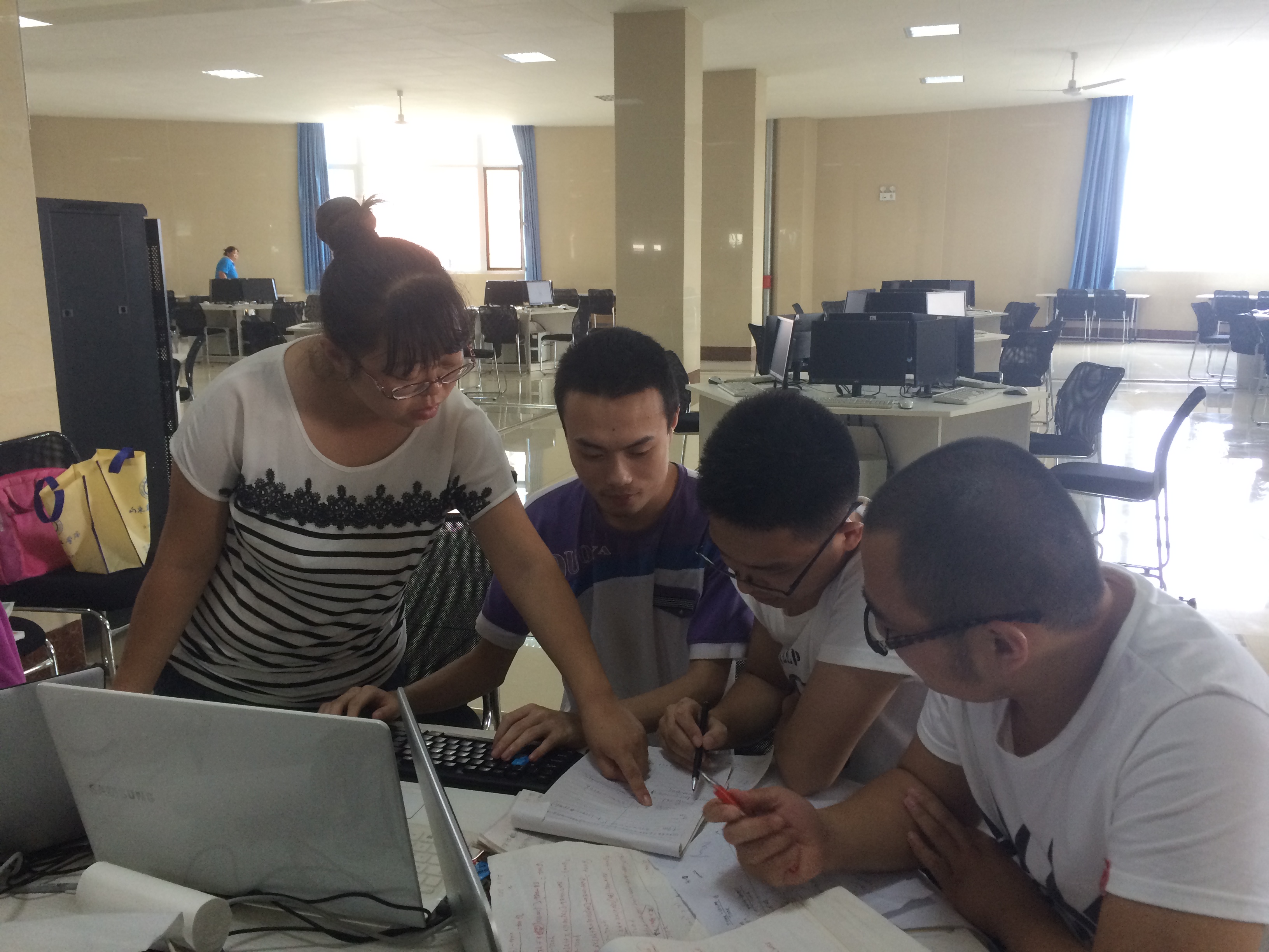 鸭脖共有5支代表队参加本次全国大学生数学建模竞赛。其中本科2队,高职3队。9月9日至11日,参赛选手在图书馆电子阅览室不分昼夜、团结协作、顽强拼搏,围绕“电池剩余放电时间预测”和“小区开放对道路通行的影响”等题目展开了72小时的学术研究。过程中,数学教研室全体建模老师积极给予指导。