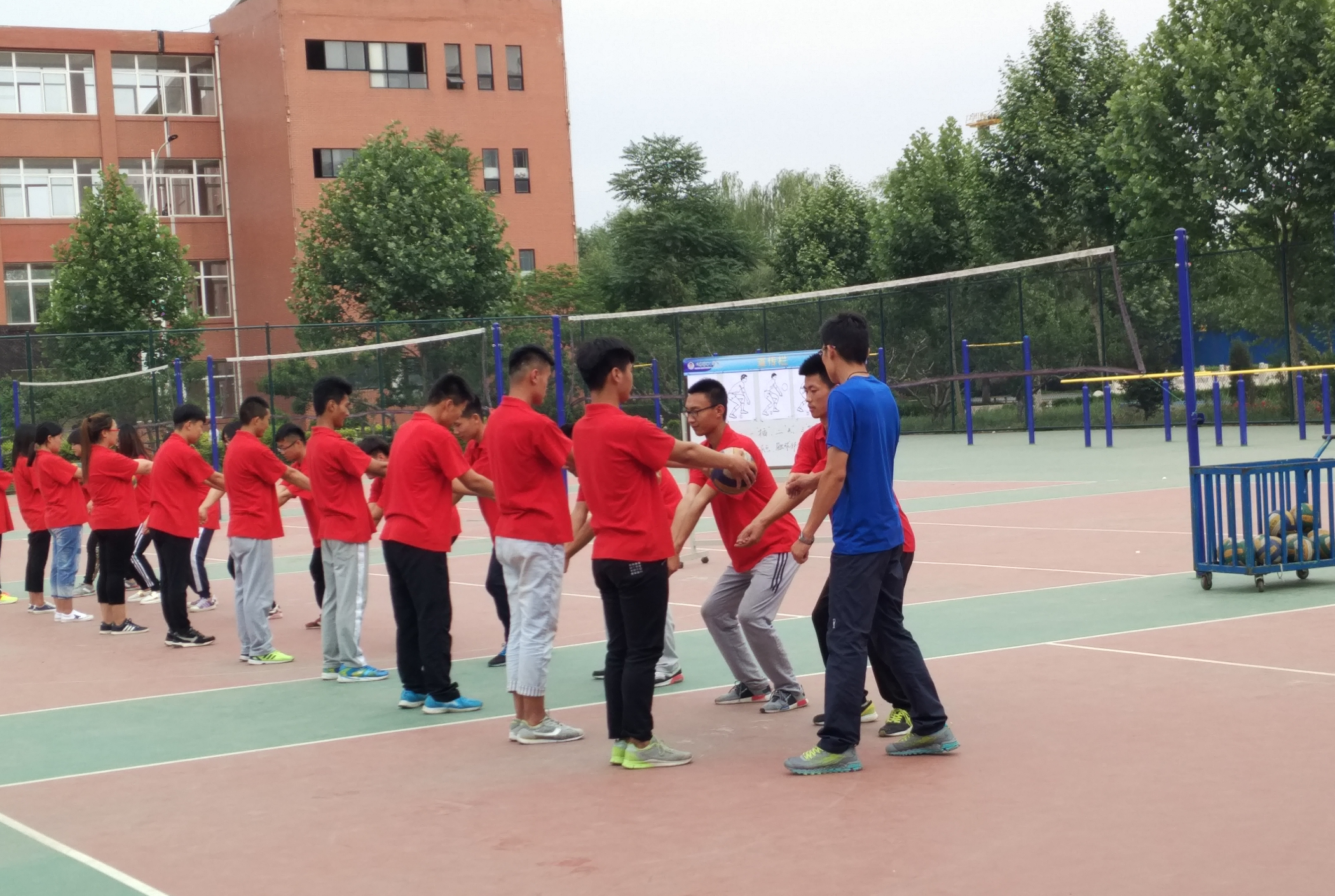 为全面了解入职教师的教学水平,进一步促进青年教师的专业成长,5月26日下午,体育教研室在学校排球场开展“青年教师教学成果汇报”为主题的教研活动。全体体育教师参加,于寅生老师作为教师代表为大家进行了示范。