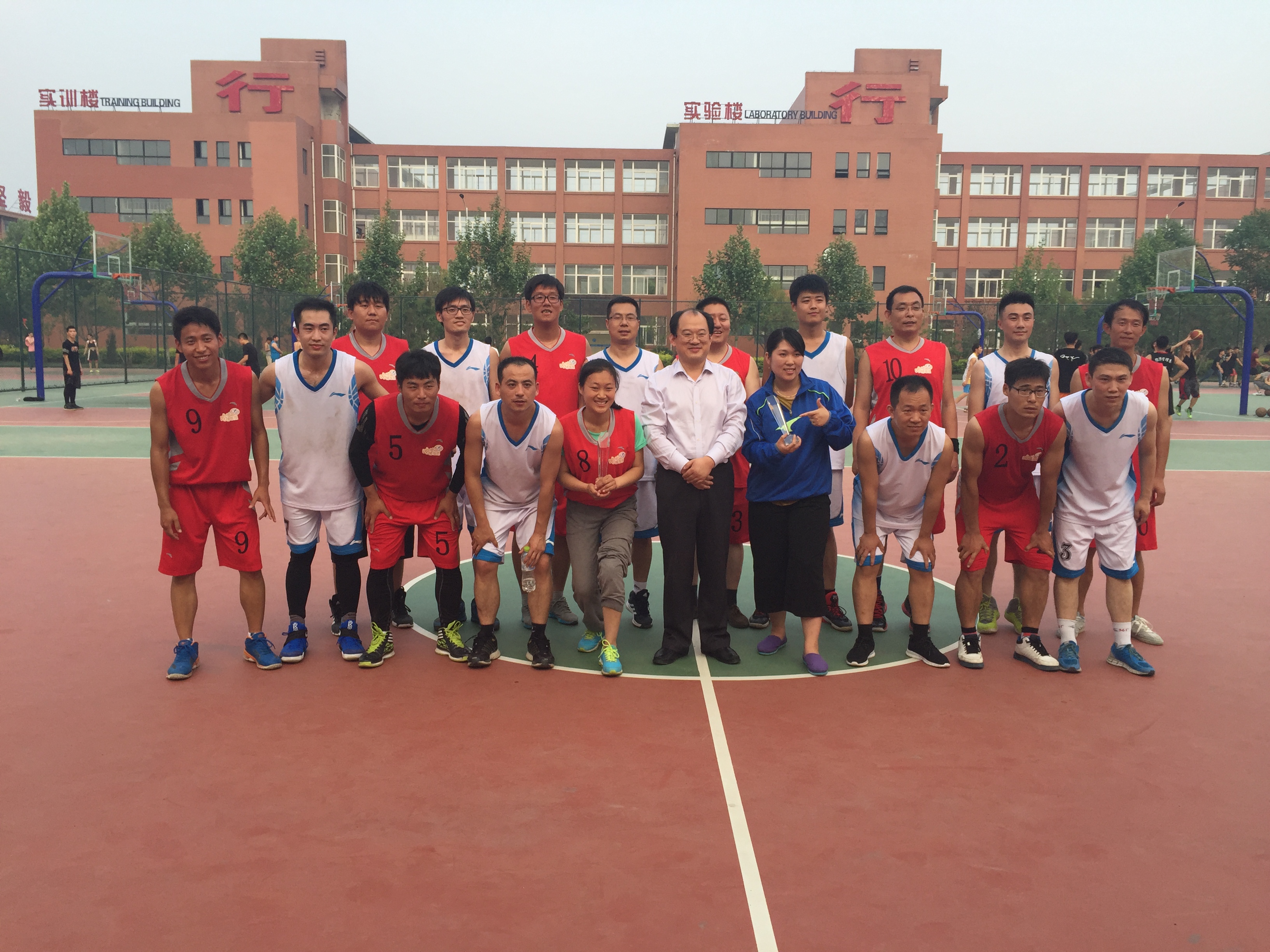 5月5日下午,鸭脖2016年首届教职工篮球联赛在历时8天的比赛后圆满落幕,当日在进行完冠亚军决赛后,举行了简单而庄重的闭幕式。常务副校长梁玉国与冠亚军球队队员一一握手表示祝贺,并与球队合影留念。