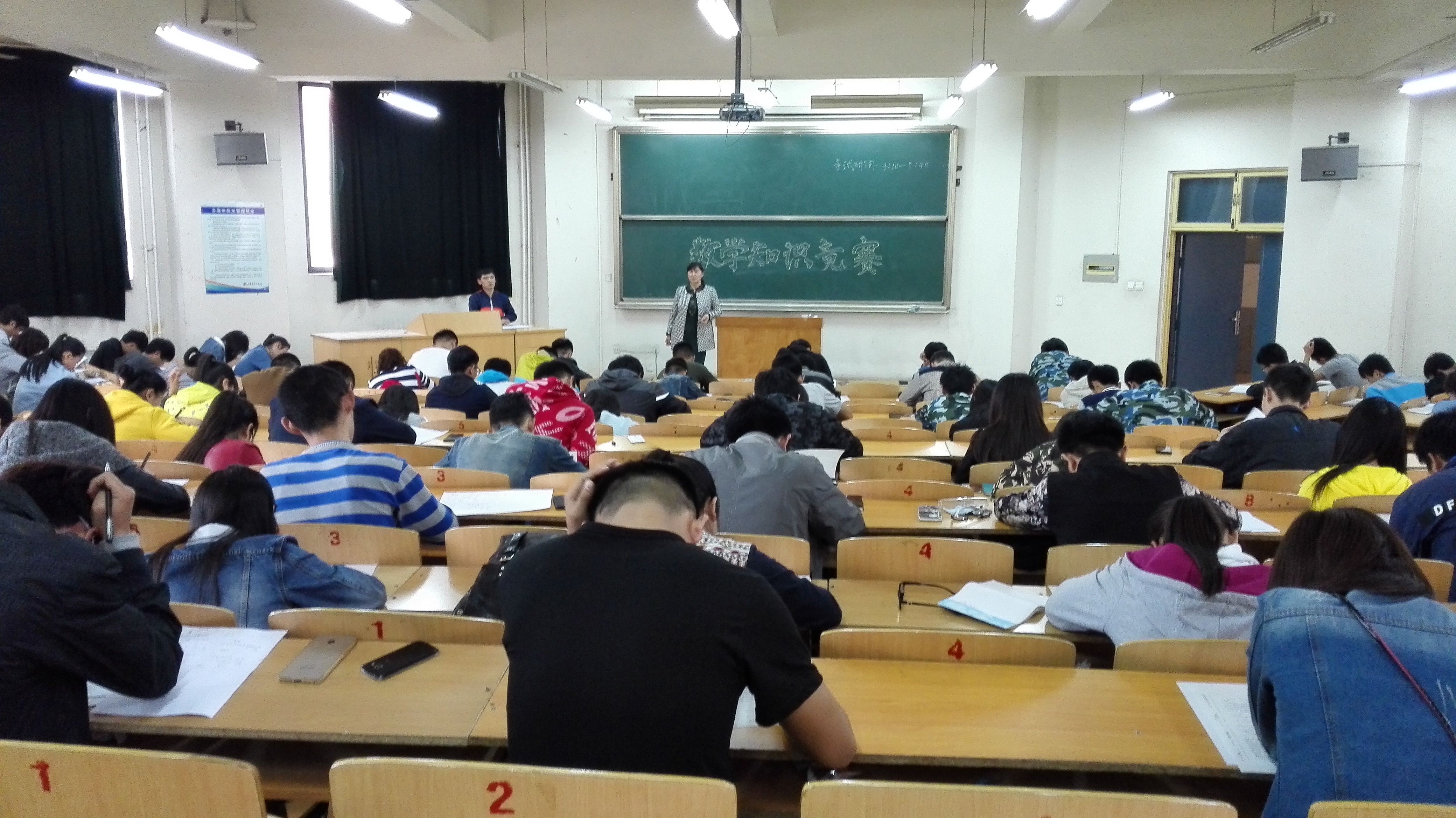 为培养学生数学学习兴趣,拓宽知识面,营造浓郁的学、做、用、研的数学学习氛围,数学教研室以鸭脖第二届科技文化艺术节为契机,于4月6日16:10、17:40在7号楼101、103、201、203开展了”数学渗透人生,方圆构筑世界“为主题的数学知识竞赛。
