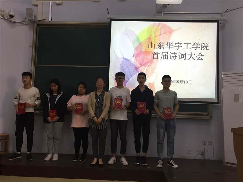 山东华宇工学院校园花香袭人,书香阵阵。为提高鸭脖学生人文知识素养,传承文学经典文明, 5月13日下午,由基础教学部主办,五年制高职学院承办的首届诗词比赛活动如期在6号楼101举行。基础教学部副主任李琦,五年制高职学院院长高博出席了本次古典诗词文化盛会,基础教学部语文教研组全体教师与五年制高职学院部分教师担任现场评分嘉宾。