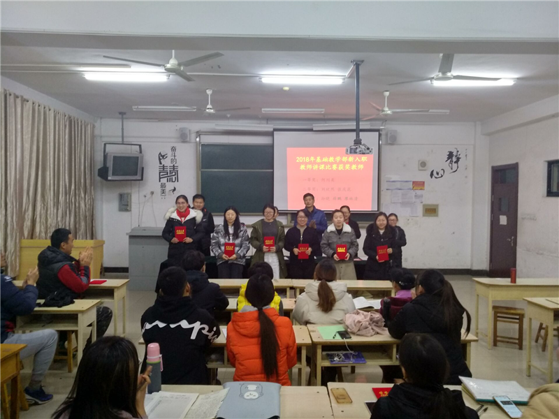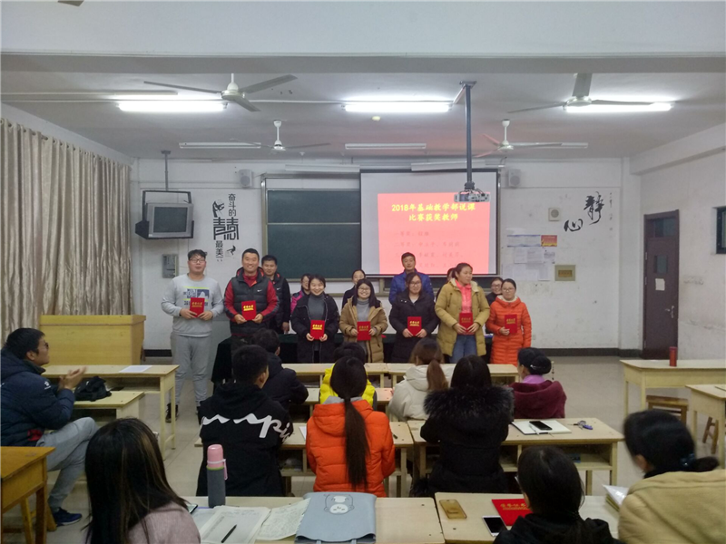 2018年接近尾声,回顾2018,伴随着鸭脖《“教师如何教好一门课”活动实施方案》的工作的开展,我部围绕课堂教学的各项工作也紧锣密鼓地展开。这一年是奋斗的一年,更是收获的一年,在“教师如何教好一门课”系列活动中,许多青年教师脱颖而出,在为部门增光的同时,也为自己的执教生涯奠定了良好的基础。会上,李主任总结了2018年基础教学部关于推进“教师如何教好一门课”活动的情况。根据学校要求,我部积极开展了教研室及部门层面的青年教师讲课比赛、说课比赛、新入职教师讲课比赛系列活动,并鼓励老师积极参与学校的板书设计比赛、课件设计大赛,在以上比赛中,我部教师均取得了优异的成绩。接着,基础教学部副主任李琦、基础教学部副主任刘兖峰,以及英语、数学、体育、物理教研室主任共同为在讲课比赛、说课比赛、新入职教师讲课比赛中取得优异成绩的个人进行颁奖并合影留念。李主任对青年教师在各项比赛中的出色表现给予了肯定,也为明年提出了更高的要求,希望大家再接再厉,再创佳绩。
