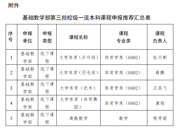 附件:基础教学部第三批校级一流本科课程申报推荐汇总表